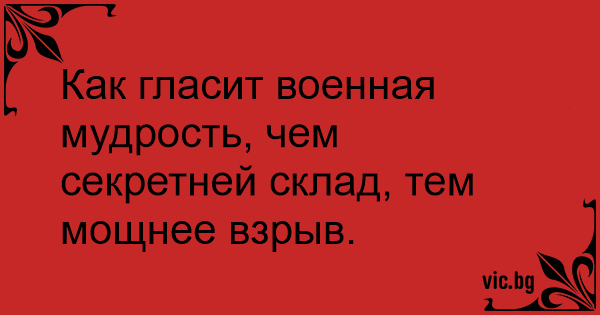 Военна мъдрост: колкото е по-секретен склада, толкова е по-силен взрива Как гласит военная мудрость, чем секретней склад, тем мощнее взрыв. 1 0 0