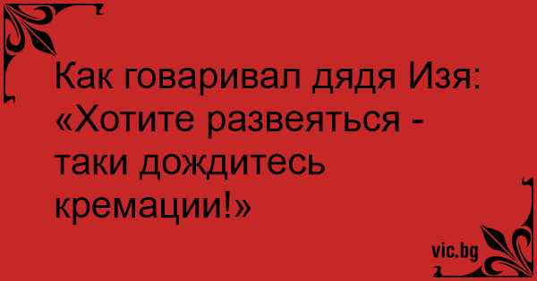 Как говаривал дядя Изя: «Хотите развеяться - таки дождитесь кремации!»