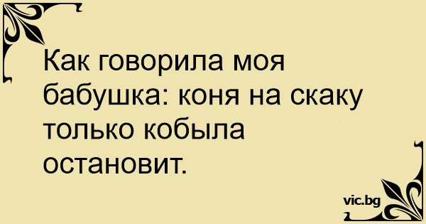 Как говорила моя бабушка: коня на скаку только кобыла остановит.