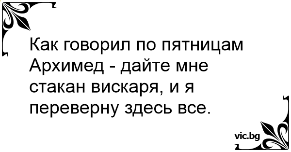 Как говорил по пятницам Архимед - дайте мне стакан вискаря, и я переверну здесь все.