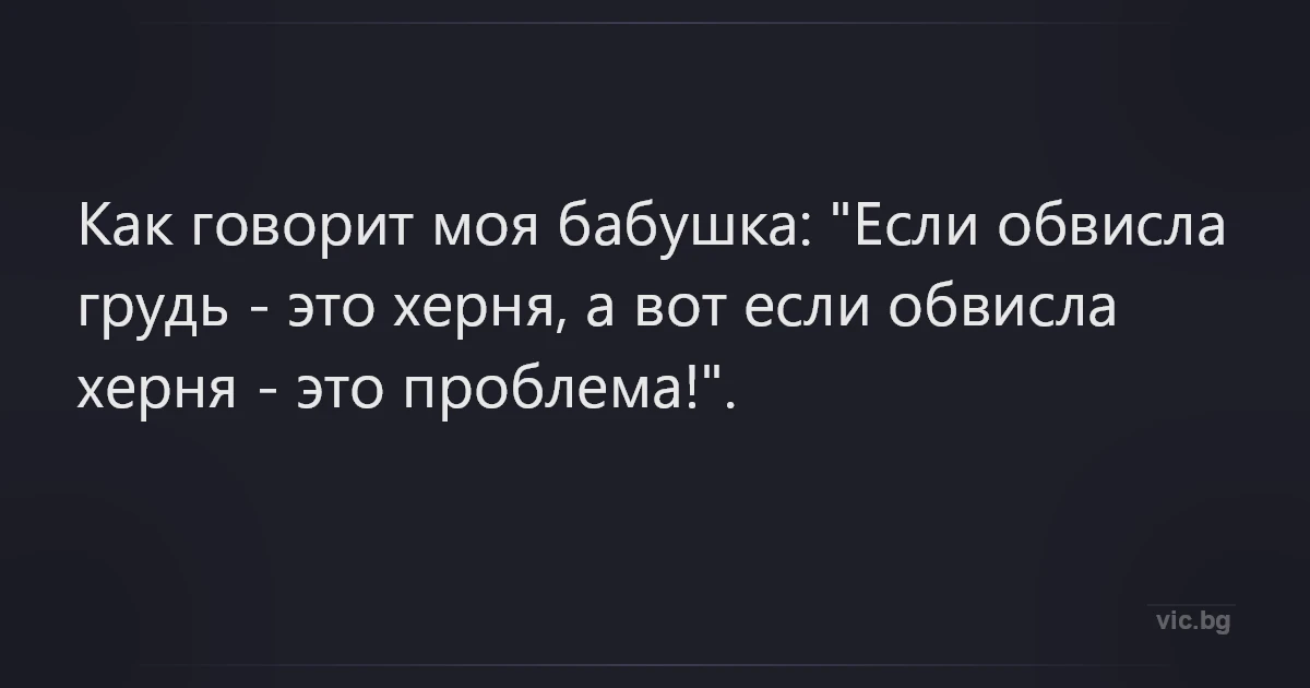 Как говорит моя бабушка: "Если обвисла грудь - это хepня, а вот если обвисла хepня - это проблема!".