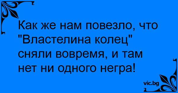 Как же нам повезло, что "Властелина колец" сняли вовремя, и там нет ни одного негра!