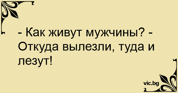 - Как живут мужчины? - Откуда вылезли, туда и лезут!