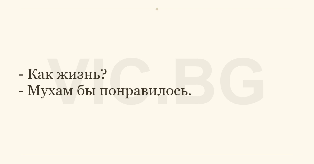- Как жизнь? - Мухам бы понравилось.