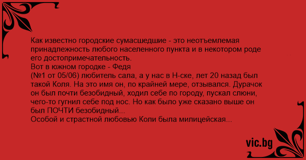 Как известно городские сумасшедшие - это неотъемлемая принадлежность любого населенного пункта и в некотором роде его достопримечательность.