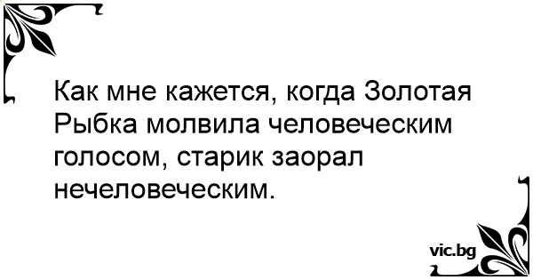 Как мне кажется, когда Золотая Рыбка молвила человеческим голосом, старик заорал нечеловеческим.