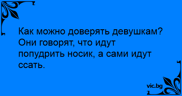 Как можно доверять девушкам?<br />Они говорят, что идут попудрить носик, а сами идут ссать.
