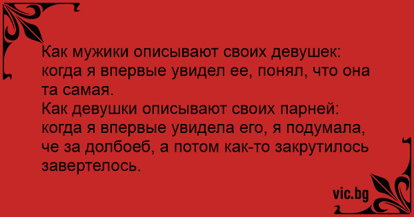 Как девушки описывают своих парней: когда я впервые увидела его, я подумала, че за дoлбoeб, а потом как-то закрутилось завертелось.