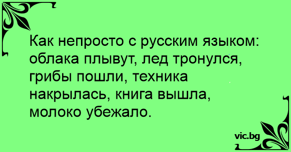 Как непросто с русским языком: облака плывут, лед тронулся, грибы пошли, техника накрылась, книга вышла, молоко убежало.
