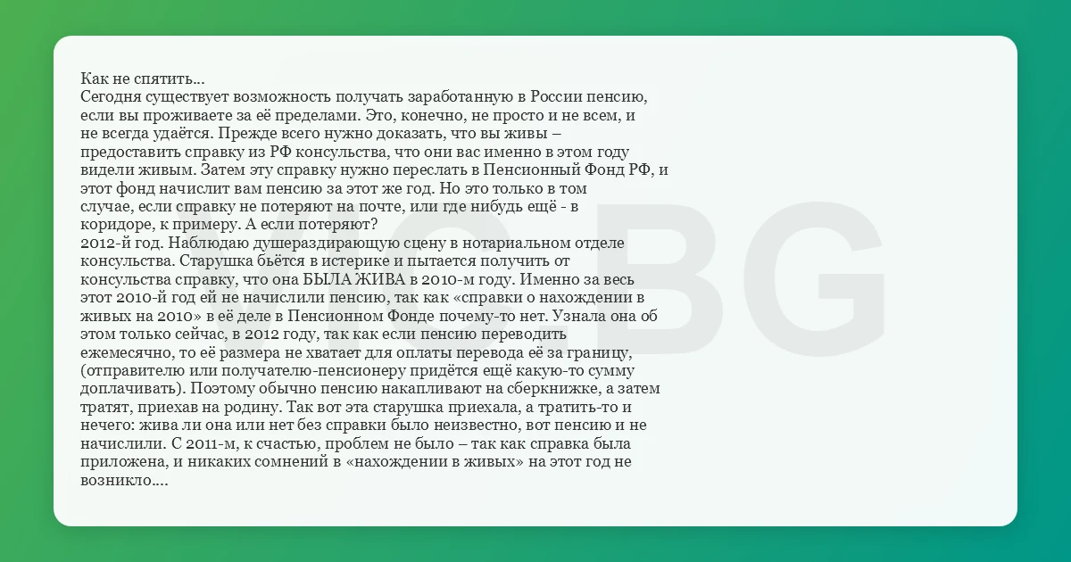 этот 2010-й год ей не начислили пенсию, так как «справки о нахождении в