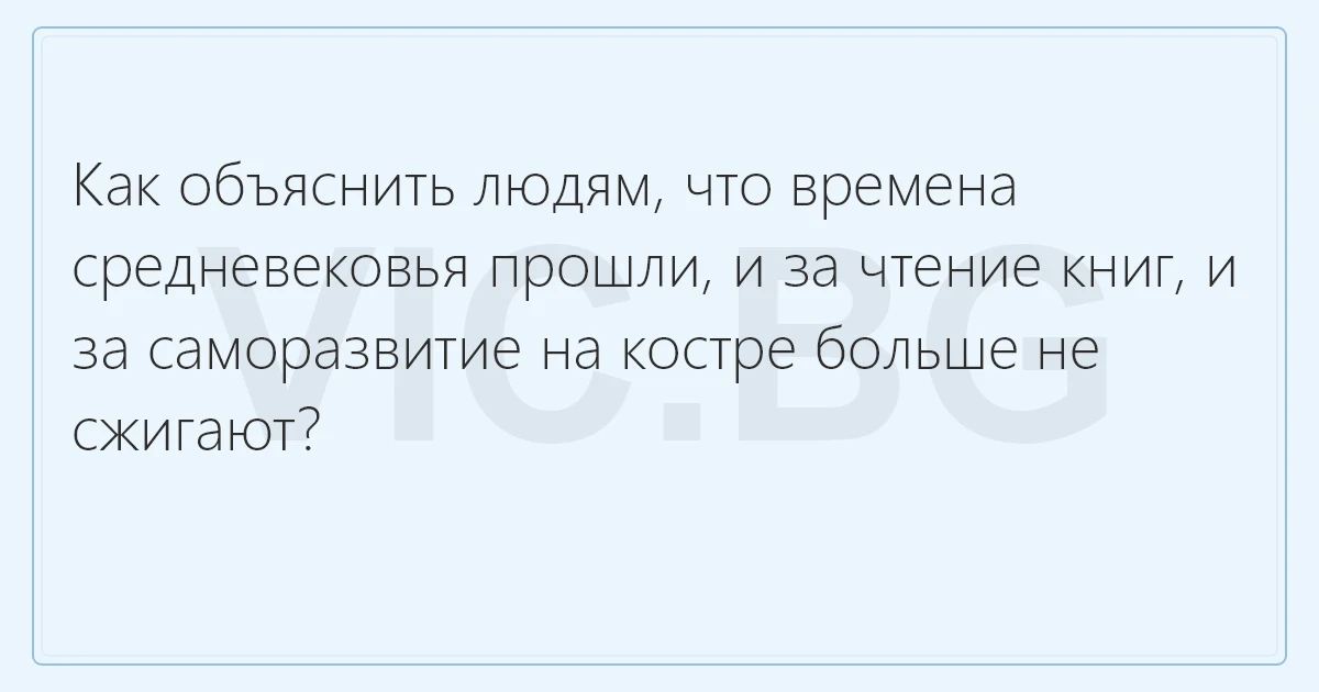 Как объяснить людям, что времена средневековья прошли, и за чтение книг, и за саморазвитие на костре больше не сжигают?