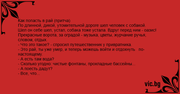 Как попасть в рай (притча)...