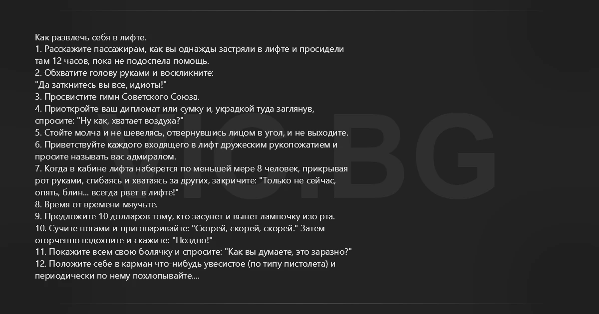 1. Расскажите пассажирам, как вы однажды застряли в лифте и просидели