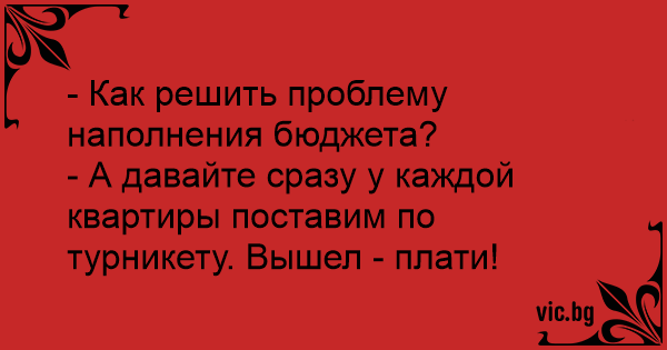 - А давайте сразу у каждой квартиры поставим по турникету. Вышел - плати!
