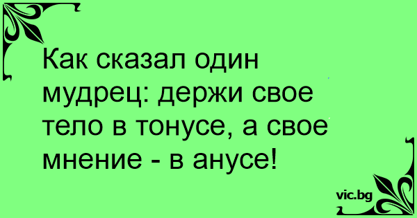 Как сказал один мудрец: держи свое тело в тонусе, а свое мнение - в анусе!