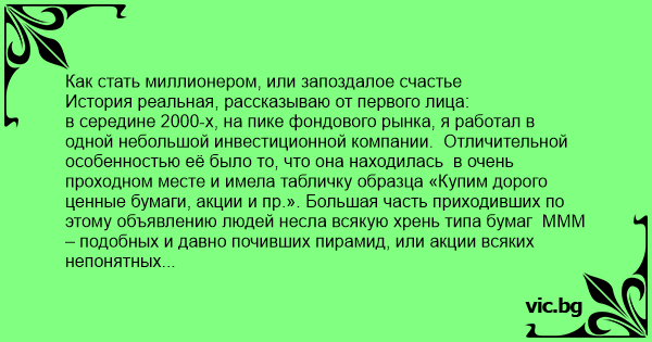 Как стать миллионером, или запоздалое счастье История реальная, рассказываю от первого лица: