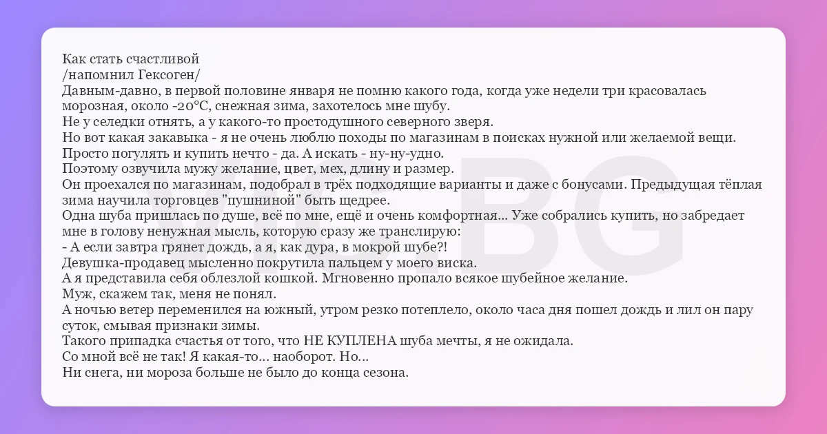 Такого припадка счастья от того, что НЕ КУПЛЕНА шуба мечты, я не ожидала.
