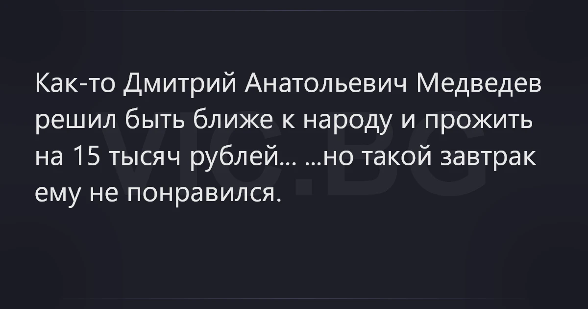 Как-то Дмитрий Анатольевич Медведев решил быть ближе к народу и прожить на 15 тысяч рублей... ...но такой завтрак ему не понравился.