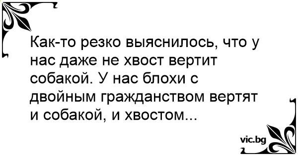 Как-то резко выяснилось, что у нас даже не хвост вертит собакой. У нас блохи с двойным гражданством вертят и собакой, и хвостом...
