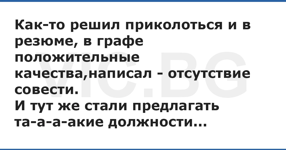 Как-то решил приколоться и в резюме, в графе положительные качества,написал - отсутствие совести.