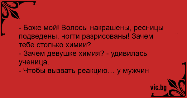 - Боже мой! Волосы накрашены, ресницы подведены, ногти разрисованы! Зачем тебе столько химии?