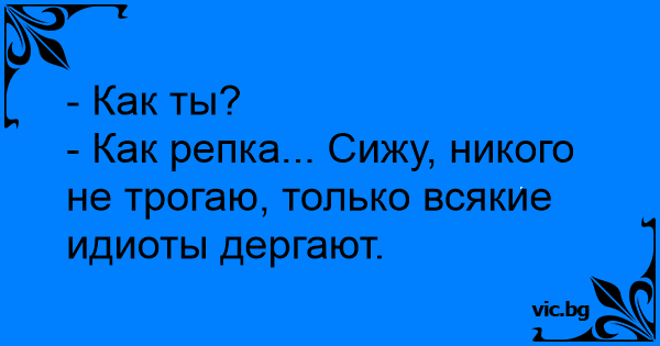 - Как репка... Сижу, никого не трогаю, только всякие идиоты дергают.