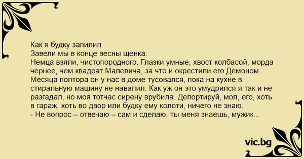 Немца взяли, чистопородного. Глазки умные, хвост колбасой, морда чернее, чем квадрат Малевича, за что и окрестили его Демоном.
