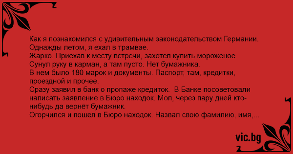 Зато убедился в добросовестности не только полицейских Германии, но и в неотвратимом исполнении законов, которые заставляют потерпевших расплачиваться с ворами.