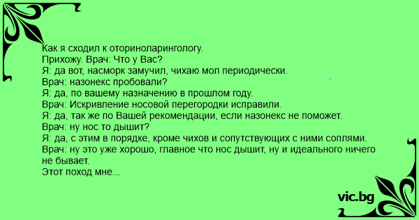 Врач: ну это уже хорошо, главное что нос дышит, ну и идеального ничего не бывает.