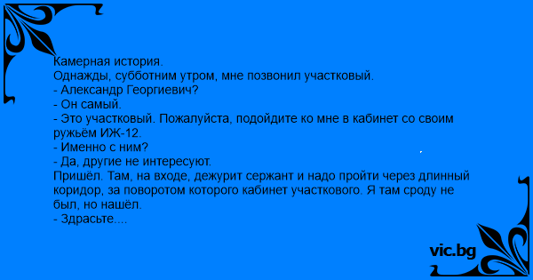 - Это участковый. Пожалуйста, подойдите ко мне в кабинет со своим ружьём ИЖ-12.