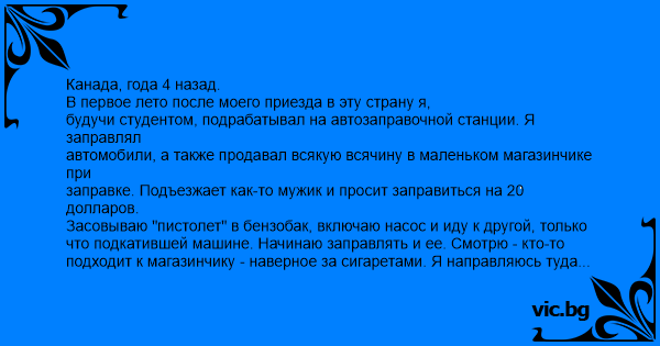 заправке. Подъезжает как-то мужик и просит заправиться на 20 долларов.