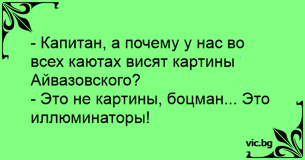 - Капитан, а почему у нас во всех каютах висят картины Айвазовского?