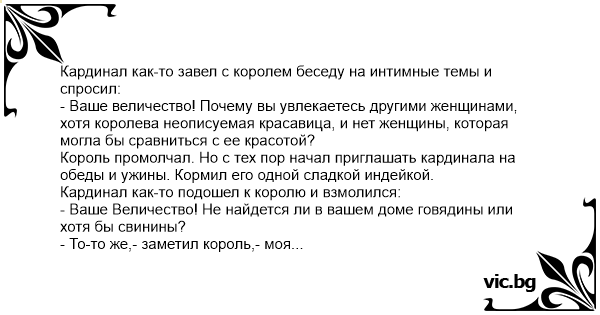 Кардинал как-то завел с королем беседу на интимные темы и спросил: