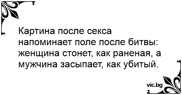 Картина после cekca напоминает поле после битвы: женщина стонет, как раненая, а мужчина засыпает, как убитый.
