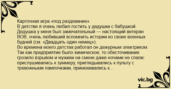 Карточная игра «под раздевание» В детстве я очень любил гостить у дедушки с бабушкой.