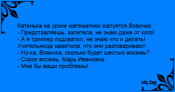 Катенька на уроке математики жалуется Вовочке: