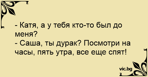- Саша, ты дуpak? Посмотри на часы, пять утра, все еще спят!