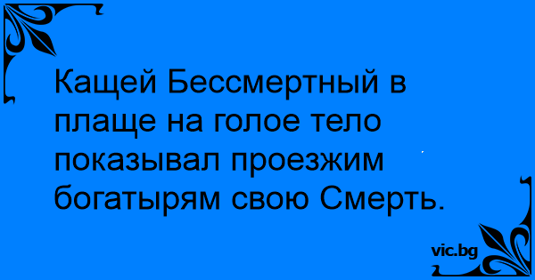 Кащей Бессмертный в плаще на голое тело показывал проезжим богатырям свою Смерть.