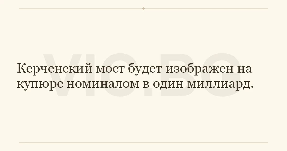 Керченский мост будет изображен на купюре номиналом в один миллиард.