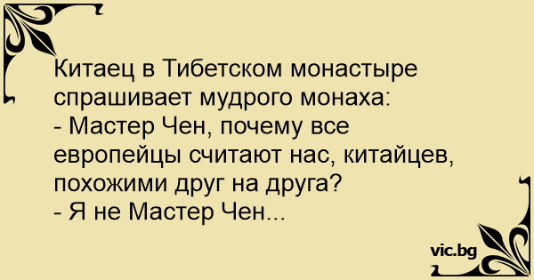 - Мастер Чен, почему все европейцы считают нас, китайцев, похожими друг на друга?