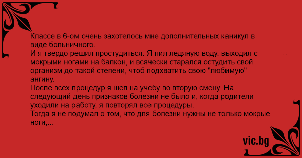 Классе в 6-ом очень захотелось мне дополнительных каникул в виде больничного.
