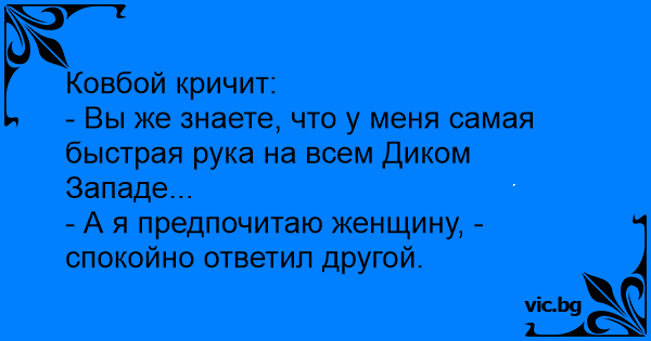 встречаються два ковбоя: - у меня самая быстрая рука на диком...