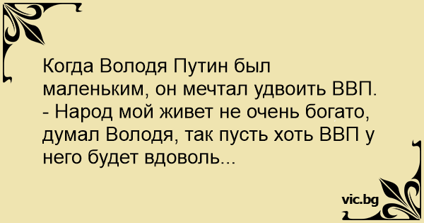 - Народ мой живет не очень богато, думал Володя, так пусть хоть ВВП у него будет вдоволь...