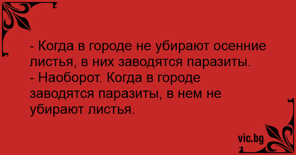 - Наоборот. Когда в городе заводятся паразиты, в нем не убирают листья.