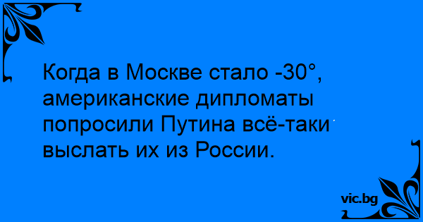 Когда в Москве стало -30°, американские дипломаты попросили Путина всё-таки выслать их из России.