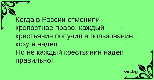 Когда в России отменили крепостное право, каждый крестьянин получил в пользование козу и надел...