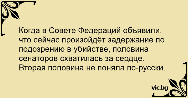 Когда в Совете Федераций объявили, что сейчас произойдёт задержание по подозрению в убийстве, половина сенаторов схватилась за сердце.