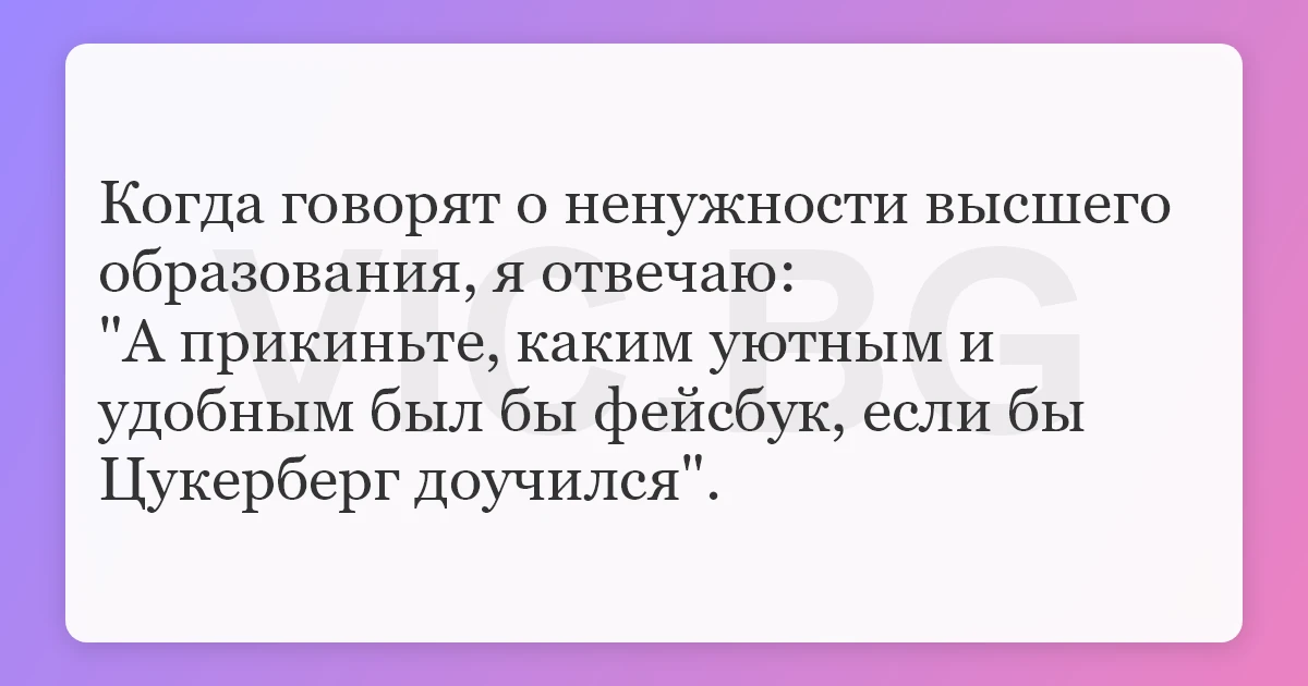"А прикиньте, каким уютным и удобным был бы фейсбук, если бы Цукерберг доучился".
