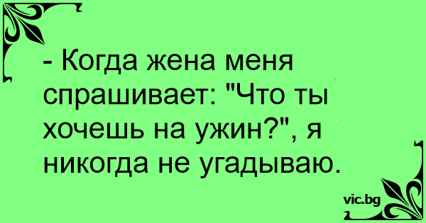- Когда жена меня спрашивает: "Что ты хочешь на ужин?", я никогда не угадываю.
