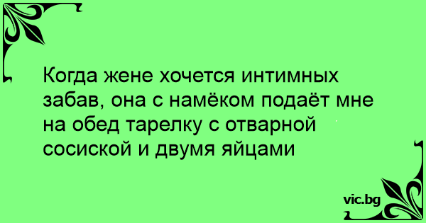 Когда жене хочется интимных забав, она с намёком подаёт мне на обед тарелку с отварной сосиской и двумя яйцами
